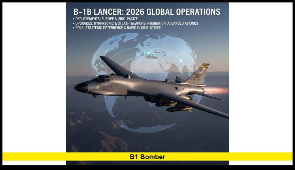 The B1 bomber remains a critical U.S. Air Force asset in 2026, with ongoing global deployments, structural upgrades, and expanded strike capabilities confirmed through active military operations and defense planning. Despite being one of the Air Force’s oldest bombers, the B-1B Lancer continues to play a central role in U.S. conventional deterrence strategy across Europe, the Indo-Pacific, and the Arctic.